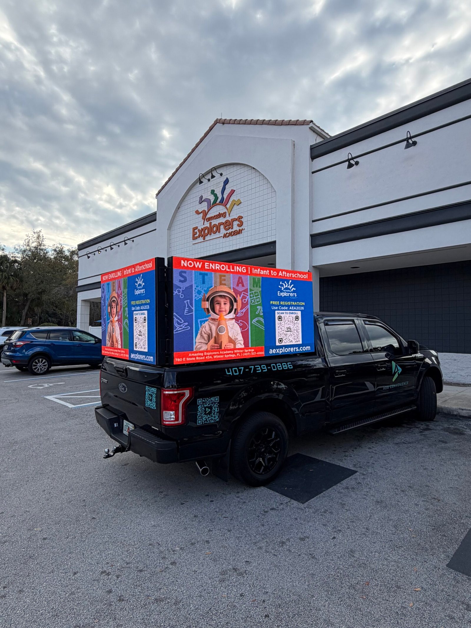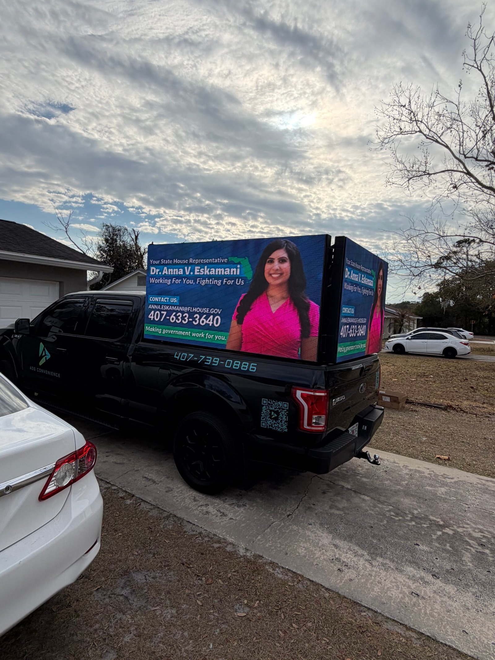 Our fleet of modern LED trucks features ultra-bright digital screens that remain visible day and night. Whether promoting a political campaign, real estate listing, school enrollment, or business launch — our trucks ensure your message stands out.